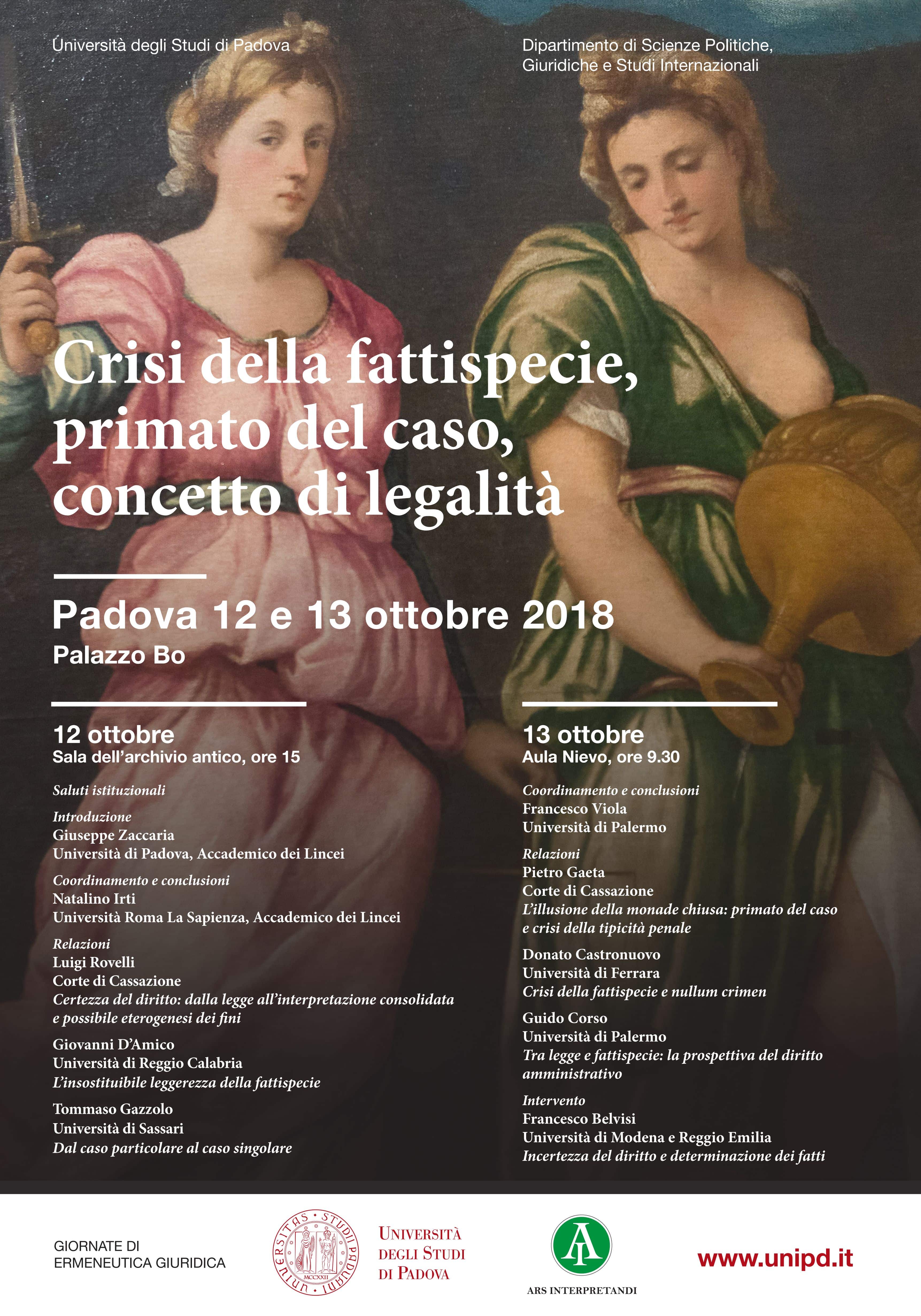 2018 – Crisi della fattispecie, primato del caso, concetto di legalità